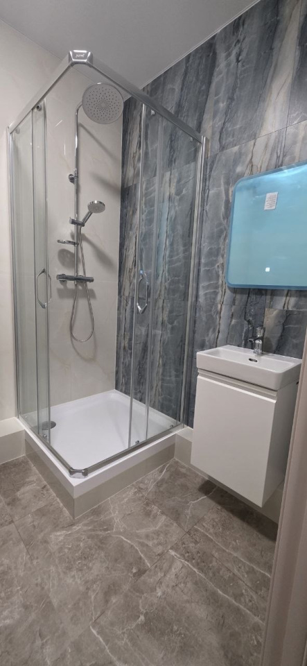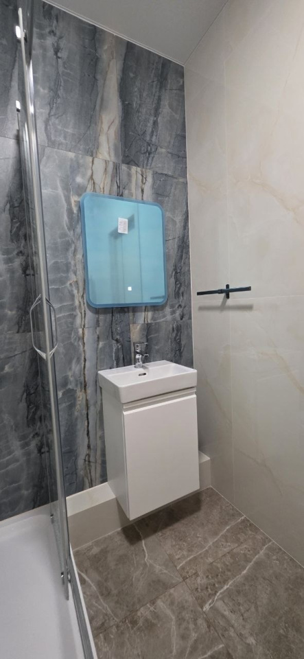 Есть зона под рабочее место. Санузел полностью из керамогранита, так же выложена плитка на лоджии.